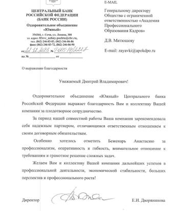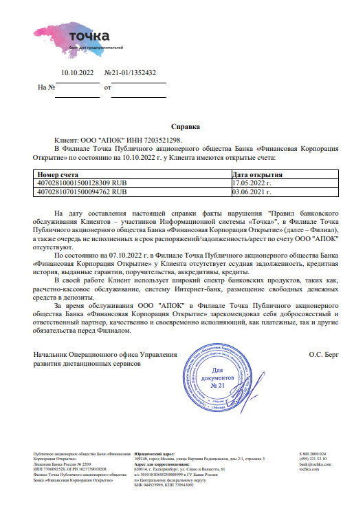 Выбирая учебный центр АПОК, вы получаете надежного партнера с высокой финансовой устойчивостью. Наша финансовая надежность подтверждена рекомендациями крупнейших Российских банков-партнеров – Точка, Сбербанк, Тинькофф.